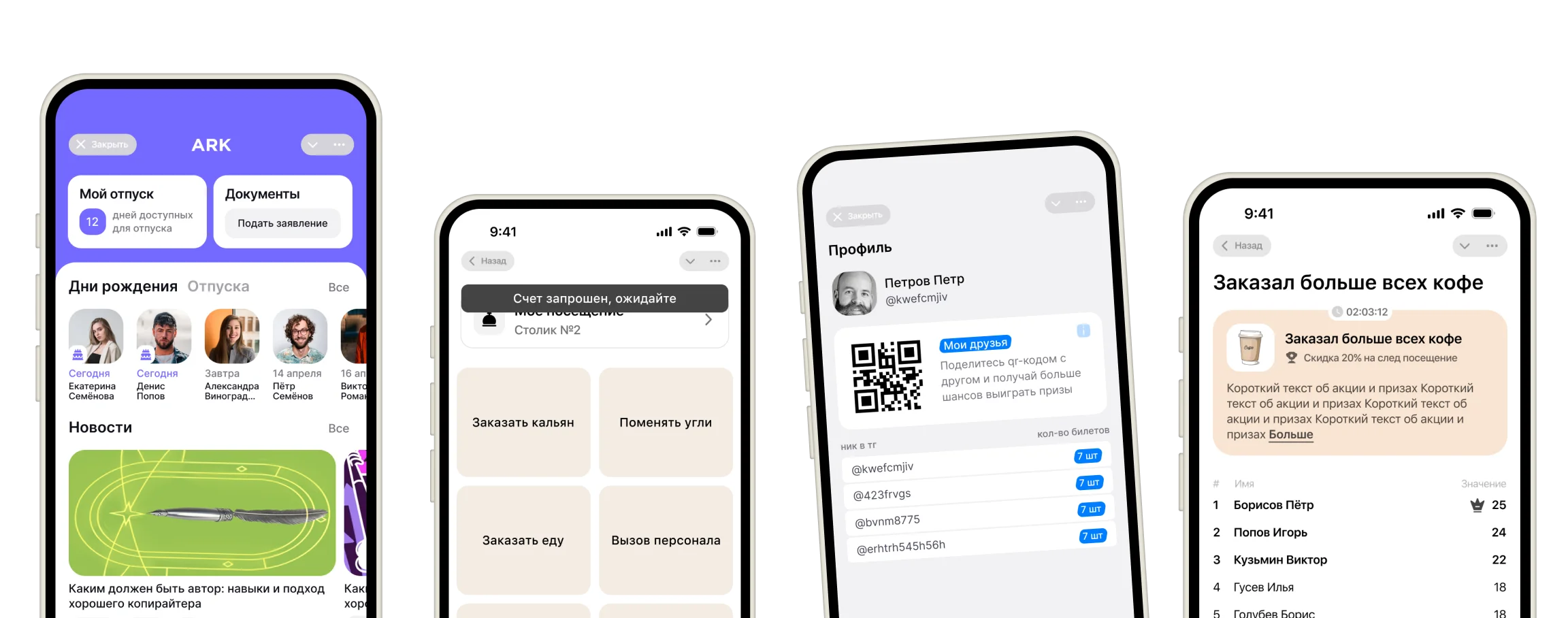 бронирование, просмотр меню, оформление заказа, геймофикация, программа лояльности